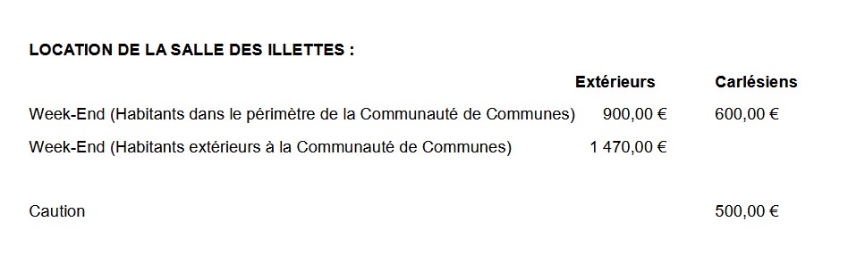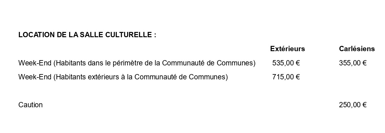 – un contrat de location qui vous sera remis par le secrétariat à compléter et à apporter ensuite en mairie,
